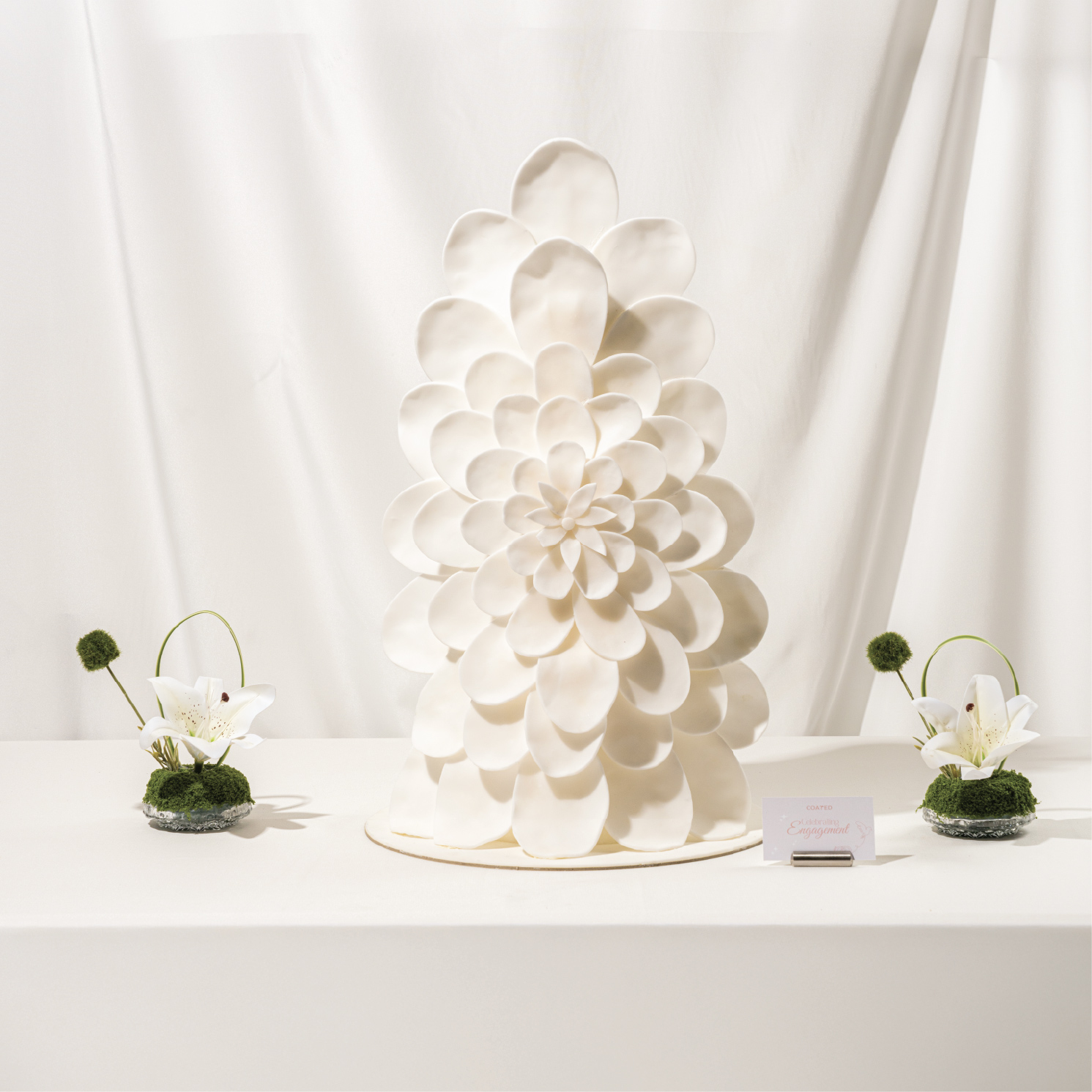 White Petals Cake 🤍 An elegant and sophisticated cake with layered petal designs, perfect for weddings and engagements, adding a luxurious touch to the moment 💍 You can add a name or customize the colors via the notes box 📝