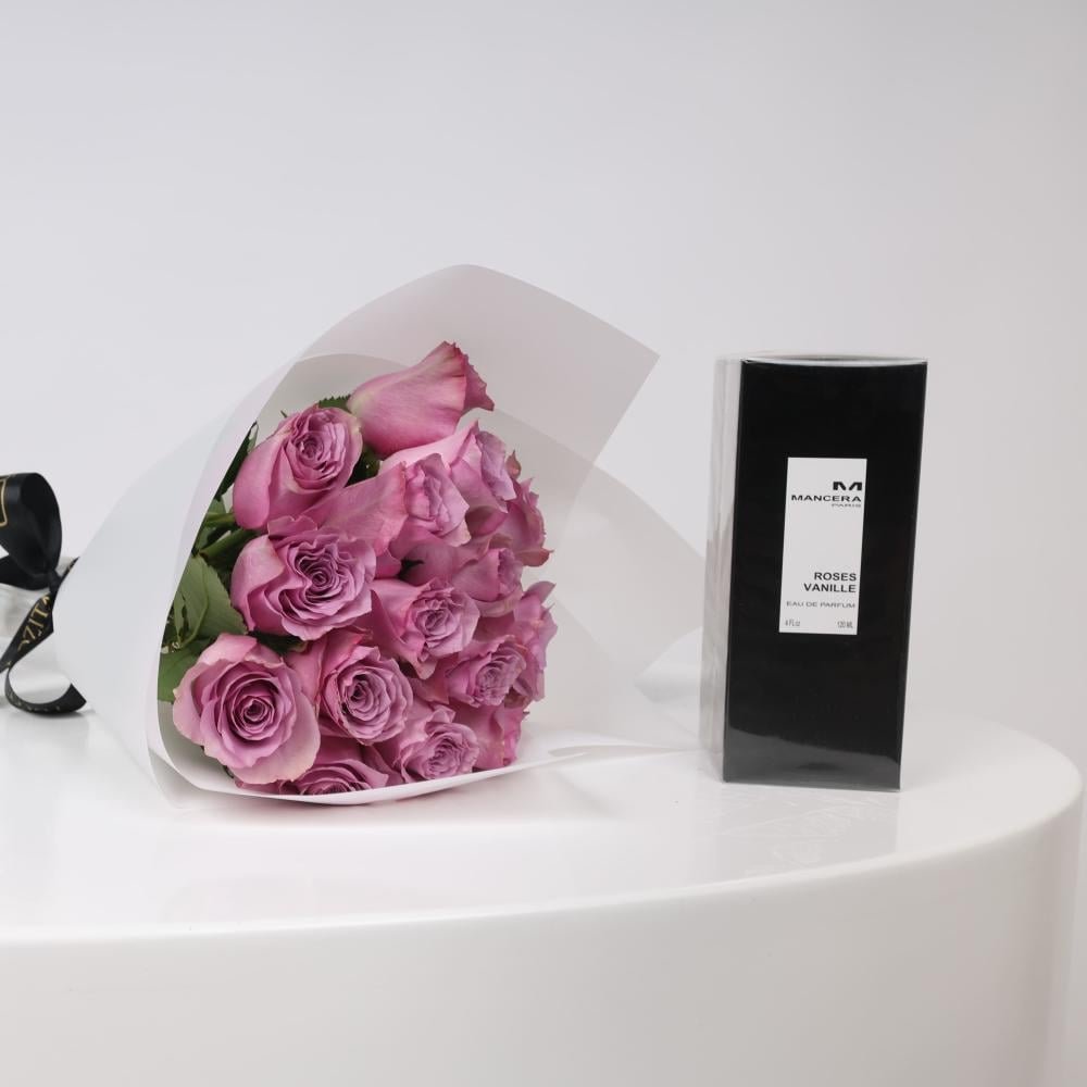 باقة الجوري البنفسجي مع عطر مانسيرا