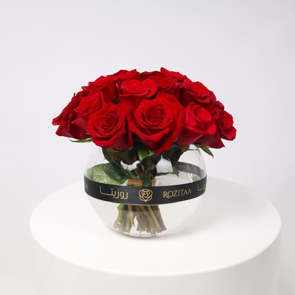 25 روز – أحمر، 1 فازة شفافة 20 – شفاف، 1 شريط – أسود