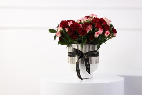10 بيبي روز أحمر، 10 بيبي روز بنك، 1 فازة سيراميك