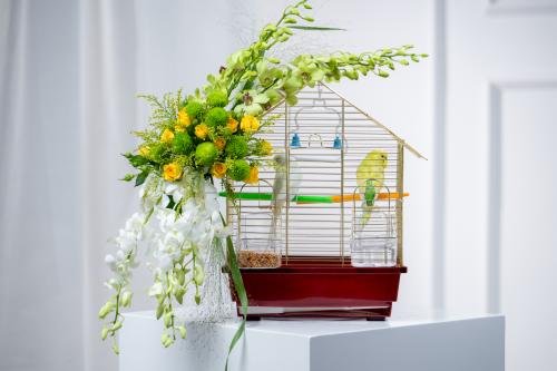 4 بيبي أوركيد أخضر، 4 بيبي أوركيد أبيض، 3 بيبي روز أصفر، 4 بوتونس أخضر، 2 سلداجو أخضر، 2 عصافير الحب أبيض وأخضر، 1 قفص ذهبي