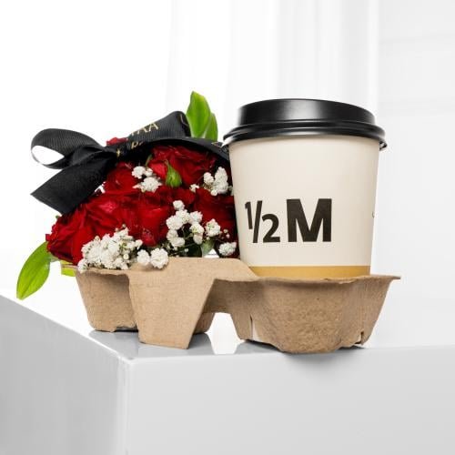 4 بيبي روز أحمر، 1 جبسوفيليا أبيض، 1 قهوة ستاربكس آيس أمريكانو، 2 روسكوس أخضر