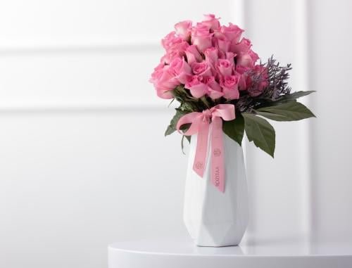 بيبي روز وردي 50، أراليا جرين 3، ليمنيوم موف 5، فازة رخام سيراميك أبيض 1.